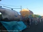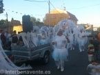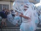 Por la tarde todas las peñas se daban cita en la calle para comenzar el desfile de disfraces, originalidad, fantasía, coreografía y buen ambiente con unos toques refrescantes, bailando bajo la lluvía, es lo que nos ofrecían los participantes.