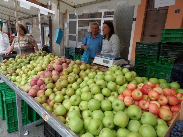 venden frutas, sobre todo manzanas y peras de variadas clases, así como productos