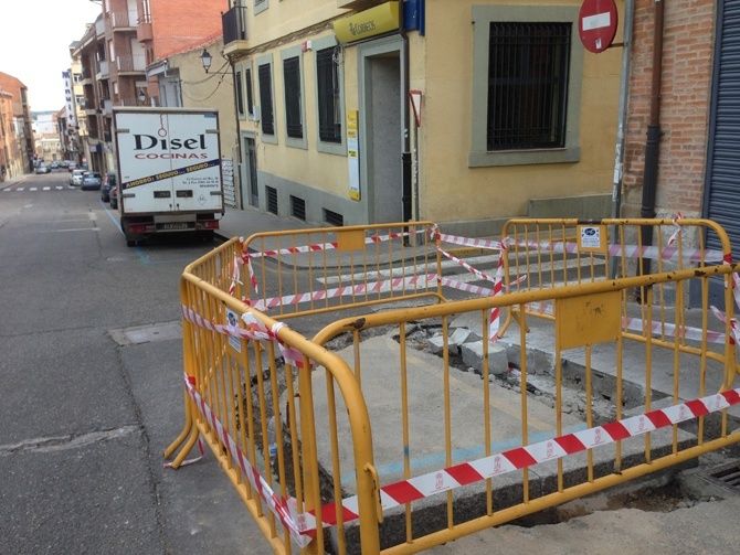 Las obras de mejora en la acera de la C/ Santa Cruz, próxima al edificio de Correos, se realizan tras las valoraciones de las concejalías de Urbanismo y de Seguridad Ciudadana.