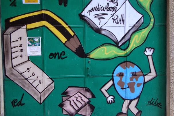 pinturas murales en los patios de algunos colegios. Seguro que realizadas como