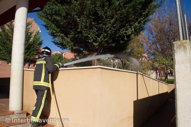 Los bomberos de Benavente y Protección Civil participaron en un nuevo simulacro, esta vez en el Colegio del Pinar