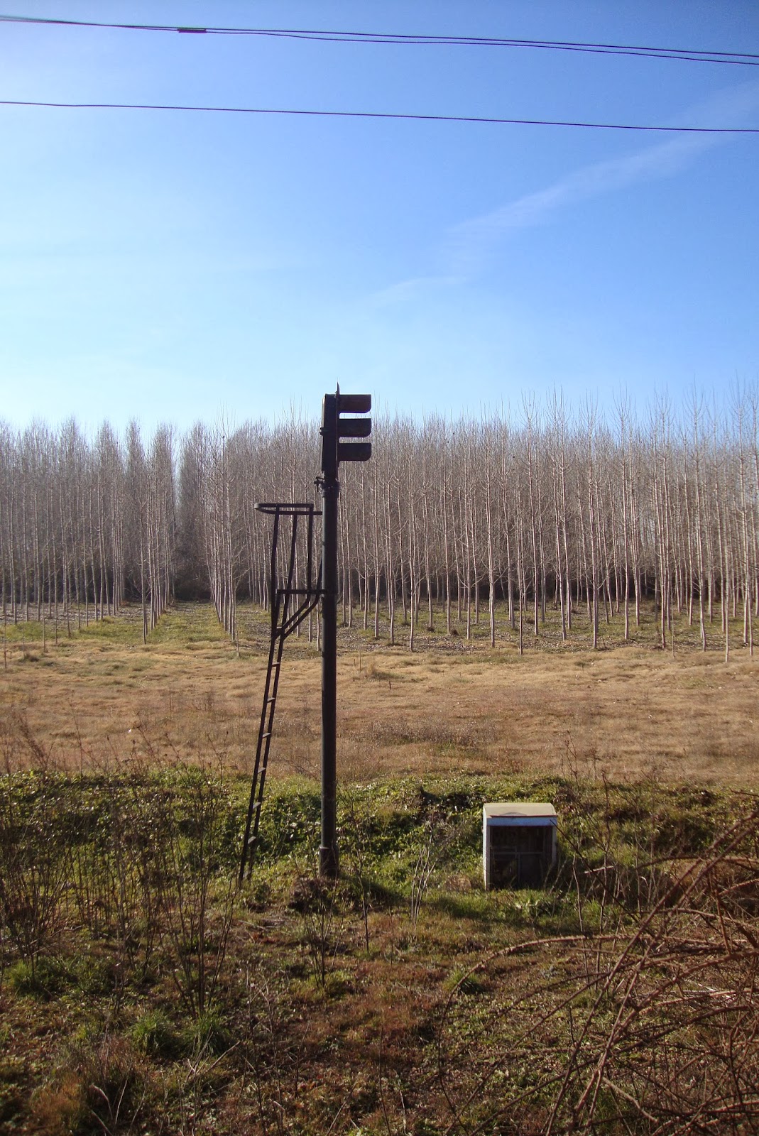 | -Ojo al tren. Paso a nivel sin barreras-. Camino de El Sequedal. |