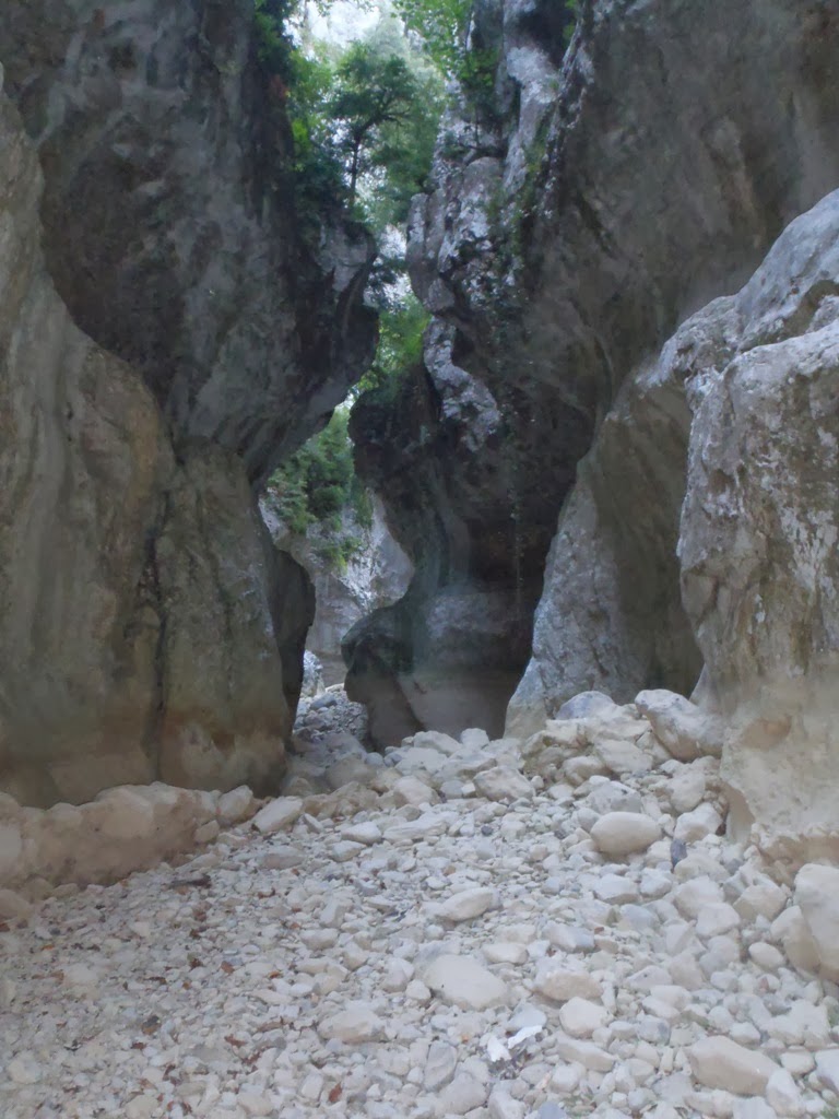 Yo os voy a contar el descenso tal y como lo vivimos nosotros, en seco, en estas condiciones el barranco te obliga a realizar al menos 3 rápeles mas de los que salen en la reseña (marcados como resaltes de 2-3 m.), ya que pequeños resaltes o saltos, se convierten en largos rápeles.