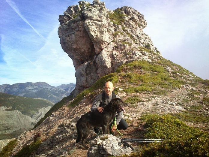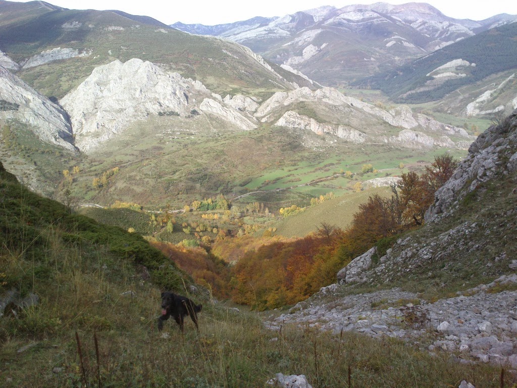 En este punto vuelve a haber hitos, poco antes de adentrarse definitivamente en el hayedo. En un pedrero de bloques medianos, giramos a la izquierda para meternos en el hayedo sin que haya una senda evidente, ladeamos este hayedo buscando los pasos mas evidentes hasta que se acaba y salimos a unas praderas desde donde podemos ver ya nuestro destino (Llamazares).