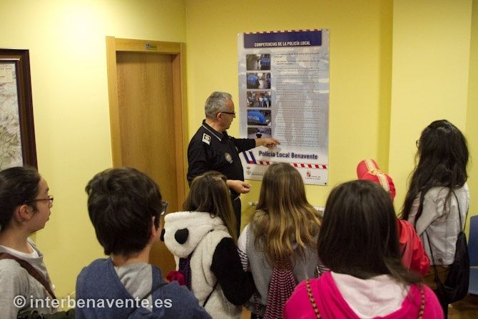 Alumnos de Burganes conocen el funcionamiento de la Policía Local de Benavente.