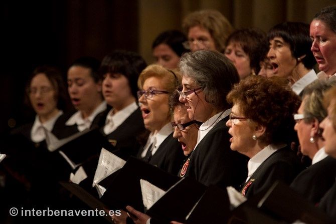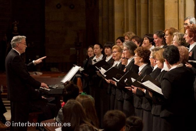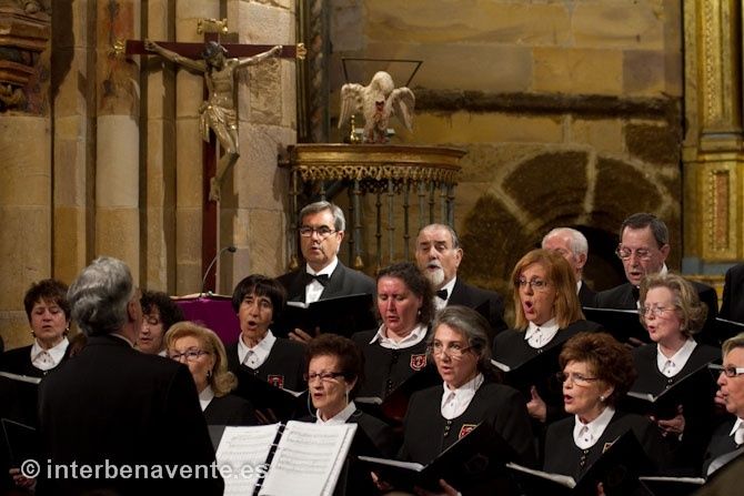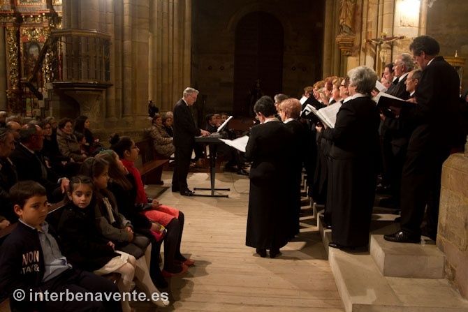 La Coral Benaventana de la mano de su director José Zaldo interpretó durante media hora una selección de piezas religiosas de su extenso repertorio, entre las que se encontraban canciones de Tomás Luis de Victoria, de Ángel Barja, compositor gallego, de Gaspar de Arabaolaza y una selección de Las siete palabras, piezas extraídas de las obras corales de Juan Sebastián Bach.