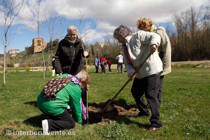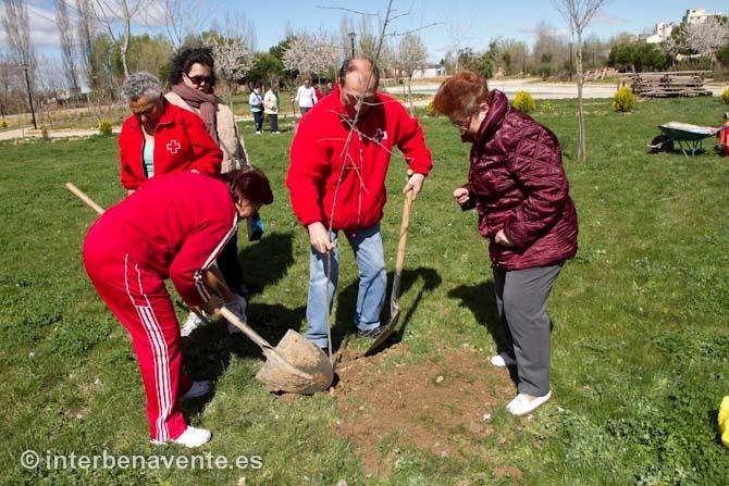 Unas veinte personas del colectivo de mayores acompañadas por los voluntarios de Cruz Roja se desplazaron hasta el Prado de las Pavas para plantar unos fresnos, una actividad enmarcada dentro del programa Envejecimiento Saludable