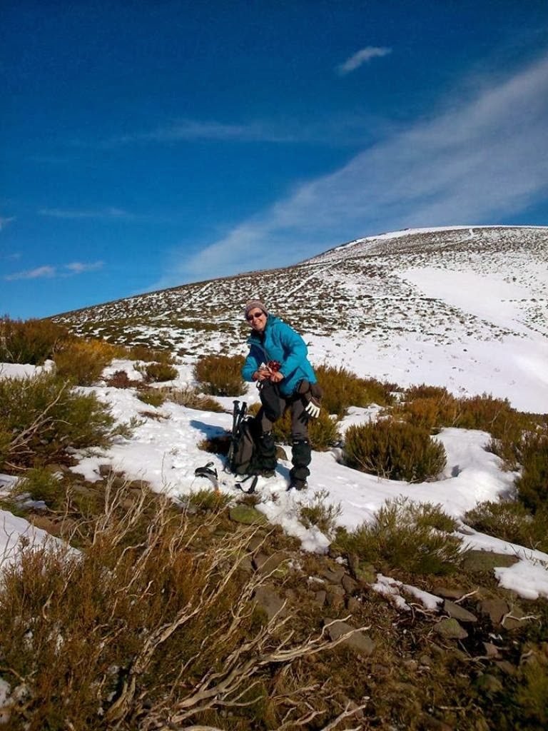 Aquí la nieve era abundante en algunas zonas, ya que estaba muy venteada, acumulando en las zonas protegidas y escaseando en los cordales y zonas expuestas al viento, donde la nieve era prácticamente hielo.