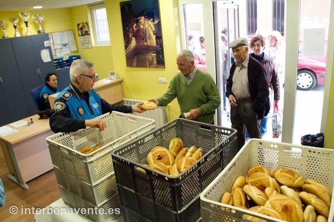 Numerosos benaventanos se concentraban a las puertas de la dependencia de la Policía Local a recoger el tradicional pan de la Veguilla