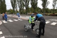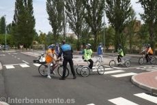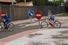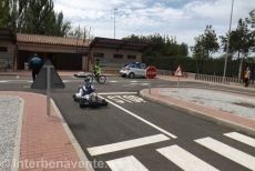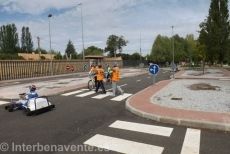 En la parte práctica los alumnos se dividieron en dos grupos, uno de ellos visitaba el Centro de Interpretación de los Ríos mientras que sus compañeros participaban en el ejercicio práctico, que consistía en varios alumnos de peatones, otros conduciendo karts, bicicletas y triciclos. Bajo la supervisión del agente y monitor del curso José Vidales, los alumnos tenían que respetar las señales viales, los pasos de peatones, así como indicar el cambio de dirección, si cometían una infracción tanto peatones como conductores, el agente les marcaba la sanción en una tarjeta. Los turnos iban rotando cada 7 minutos.