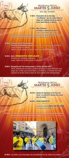 11:00 Pasacalles de la charanga Los Mataos por las calles hasta el hogar del jubilado, donde se partirá hacia Santa María la Mayor.