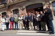 La corporación municipal, representantes y trabajadores del Ayuntamiento y algún ciudadano se concentraba a las puertas del Ayuntamiento para guardar un minuto de silencio por el asesinato de la Presidenta de la Diputación de León, Isabel Carrasco