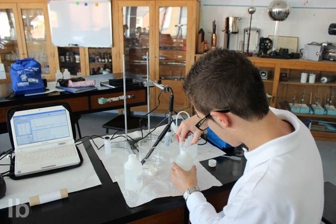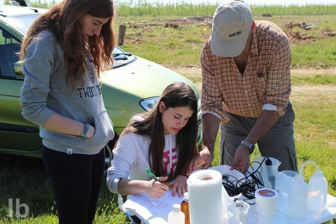 Recogida de muestras de agua para su análisis posterior en los laboratorios del Colegio Virgen de la Vega.