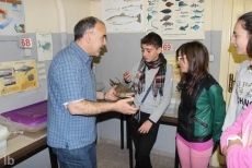 La segunda fase del taller consistió en observar y tocar distintos ejemplares de animales: tiburón, pez torpedo, lamprea, armadillo, cola de elefante, etc.