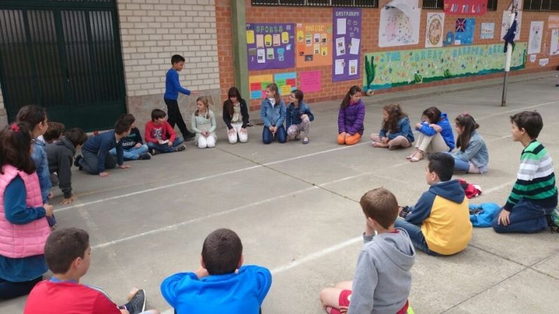 4. Algunos alumnos de cuarto de la ESO presentaron la coreografía de "The Kangaroo Song" al resto de los alumnos de educación infantil y primaria.