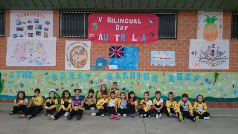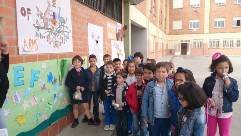 1. Búsqueda de información y elaboración de murales, así como la explicación de los mismos a todos los alumnos del colegio por parte de otros compañeros. Se trataron aspectos relacionados con la historia, bandera, monumentos, el edificio "Piña", su gastronomía, sus deportes, personas famosas que nacieron en Australia, la gran barrera de coral, los animales típicos de Australia, su escudo y moneda.