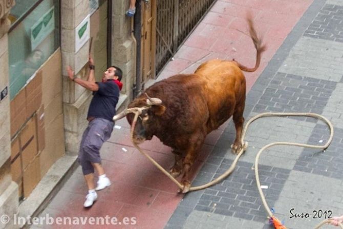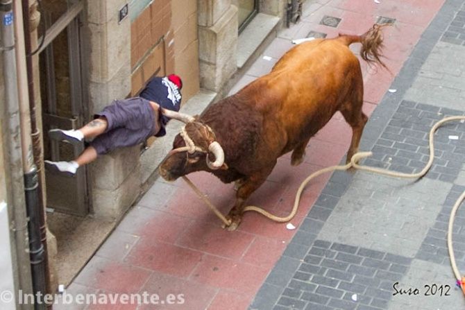 El objetivo de la cámara de Suso Martín recogió el momento de la cogida que se produjo en la calle de la Rúa