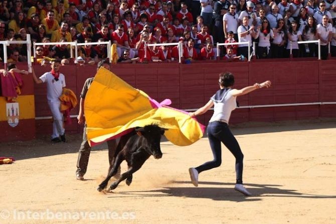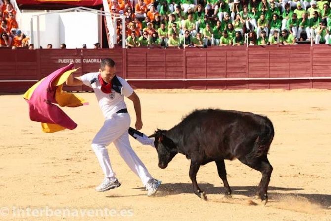 Cada año, cuatro de las Peñas oficiales eligen a sus más valerosos peñistas para enfrentarse en el ruedo a uno de los becerros y demostrar que el arte del toreo no solo es dificil sino que es dificilisimo, a tenor de los resultados.