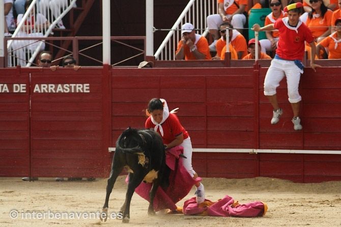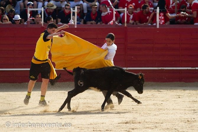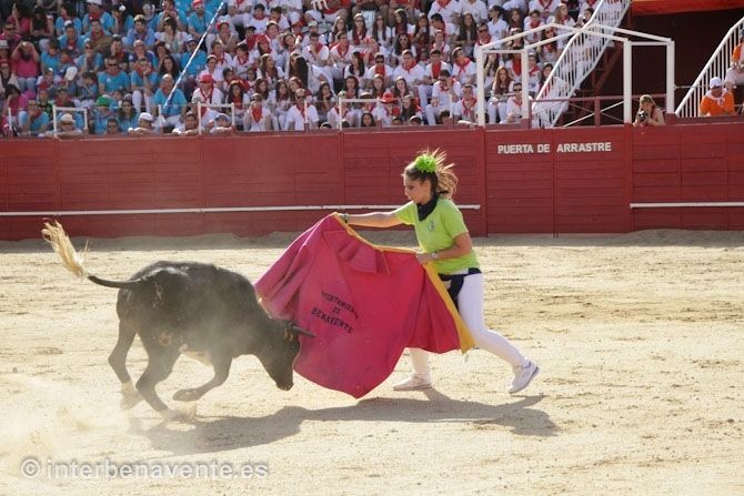 Para celebrar su trigésimo quinto aniversario los valientes de la peña Malgrat portaron el número 35 a la espalda y cantaron el cumpleaños feliz a ritmo de charanga. Alicia Regueras, Sandra Cid y Cynthia Escudero representantes de la juventud benaventana también se vieron las caras con un astado, más pequeño que los demás, con el que hicieron una buena faena y recibieron la ovación del público.