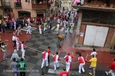 El astado nada más pisar suelo benaventano ha sido acercado a una de las gradas donde se le han enfundado las astas y colocadas dos bolas en cada pitón, una vez engalanado ha llegado a la Plaza de la Madera por la Calle Florida, Candil hasta llegar a la plaza donde a la entrada volteaba a un hombre, no se ha producido heridas por asta de toro, al ternerlos enfundados. El toro elegía en todo momento el itinerario de su recorrido que se ha centrado en mayor parte por la Calle Candil, Calle Sancti Spiritus y sobre todo Calle San Antón, hasta que enfilaba Calle Las Eras para ser de nuevo metido en el cajón.