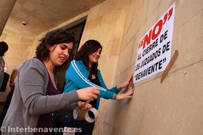 Una concentración encabezada por los miembros de la Asociación en Defensa del Partido Judicial de Benavente, formada por personal laboral de los juzgados así como abogados y procuradores que ejercen su actividad laboral en Benavente.