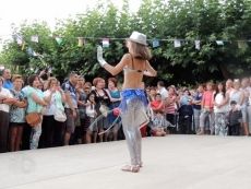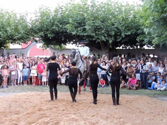 Las bailarinas de la Escuela de Baile Mari Jose realizaron un espectáculo de baile ecuestre que creó gran expectación y fue muy aplaudido por el numeroso público que llenaba la zona de baile donde se desarrolló.