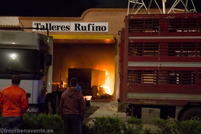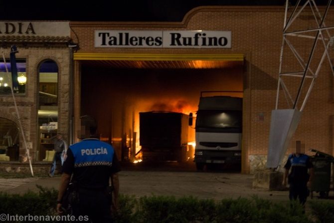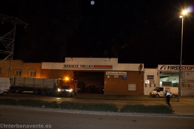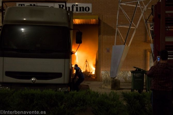 Los bomberos de Benavente acudían a la llamada del 112 alertados por un fuego en un taller de la Avenida Federico Silva. Inmediatamente se personaron los ocho efectivos del parque de bomberos, una patrulla de la Policía Local a la que se suman, minutos más tarde, otros dos agentes, y la Guardia Civil.