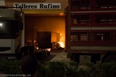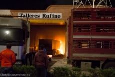 Unos minutos de tensión los que vivían los trabajadores del taller quienes consiguieron sacar algunos de los camiones estacionados dentro del garaje.