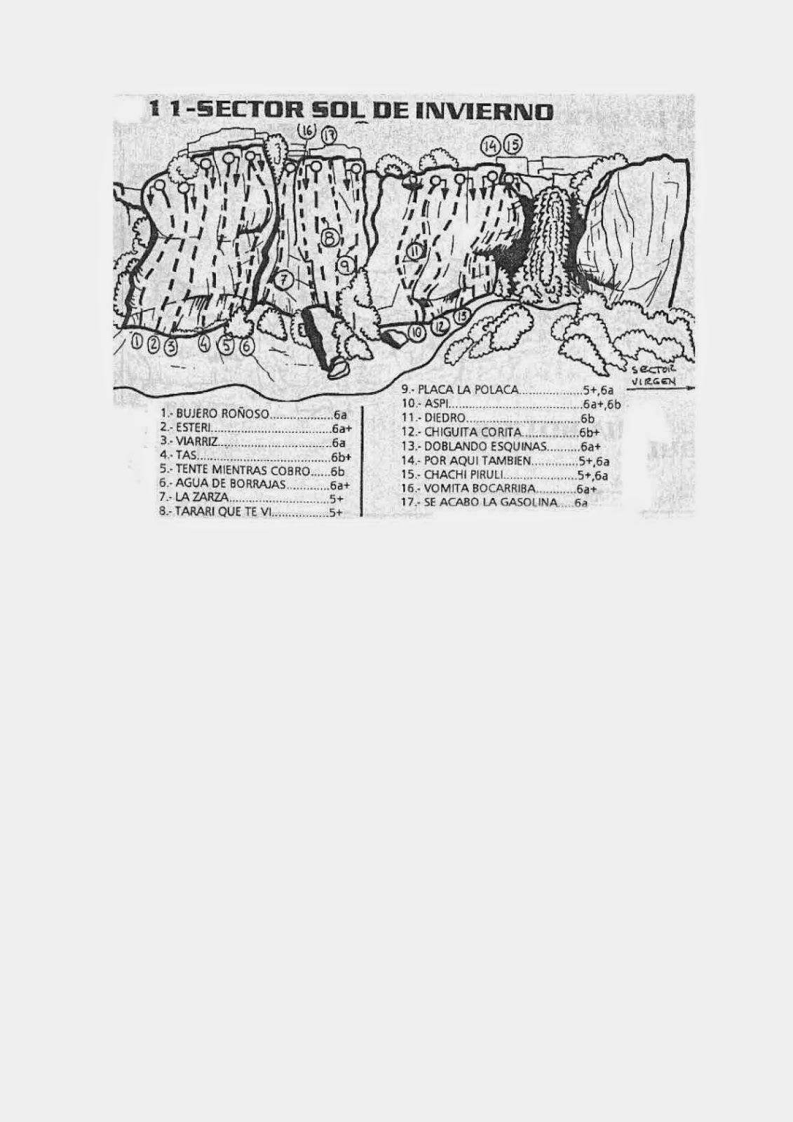 Aunque como he dicho antes, en la actualidad hay muchas vías nuevas que no salen en ninguno de los dos. Tengo entendido que un escalador de Palencia esta preparando una guía con todas las nuevas vías… pero de momento no hay nada. Nosotros probamos un par de vías de las que no salen en los croquis, y estaban muy bien, vías de fisura/diedro, que sobre todo, estaban menos sobadas que las más clásicas.