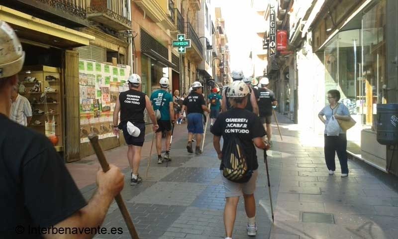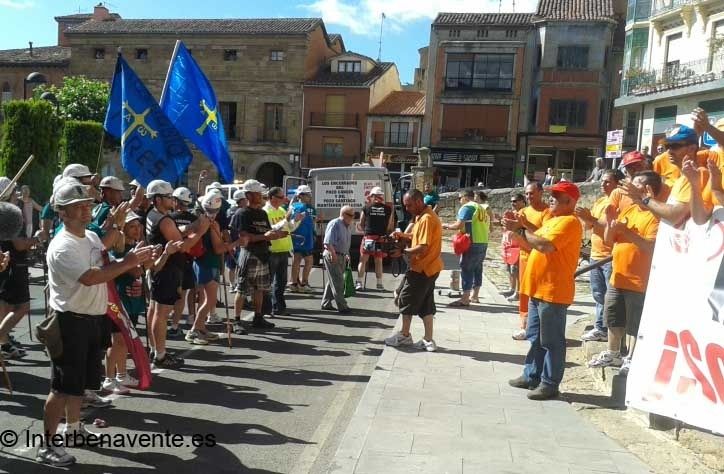 Eran las 10,30 de la mañana cuando los 200 mineros, acompañados de vehículos que actuaban como soporte vital, entraban en el termino de Benavente bajo la banda sonora del himno minero, a coro todos los mineros comenzaron a cantarlo lo que hizo que muchos de los curiosos que se acercaron a verles comenzaran a aplaudir y a animarles con gritos como “Ánimo Valientes”, “Vivan los mineros”, “Seguid con vuestra lucha”.