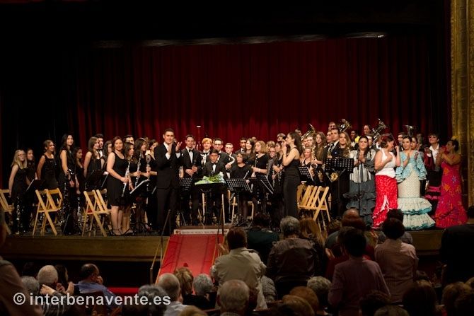 Las entradas ya se habían agotado días antes, y eso se notaba en la larga fila de público que, una hora antes, ya esperaba a las puertas del Teatro para coger asiento y disfrutar de una velada especial que había diseñado la Banda de Música generando una gran expectación.