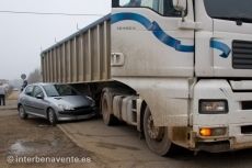 Alrededor de las 12:00 horas un coche que se incorporaba desde el aparcamiento existente en el cruce de la Via del Canal con la Carretera de los Salados ha sido arrollado por un camión que circulaba por la Via del Canal.