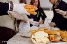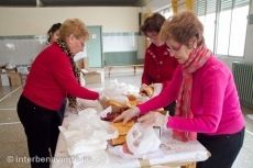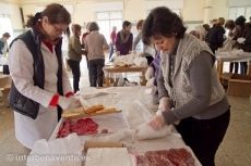 Desde primera hora de la mañana el gimnasio del colegio San Vicente de Paúl se convirtió en el centro de operaciones de esta operación bocata. Una treintena de voluntarias y voluntarios se encargaban de la logística para organizar tanto la recepción de pan y productos, como para cortar y rellenar los bocadillos y su distribución a los distintos centros educativos y empresas. Sorprende la detallada organización para conseguir que los pedidos sean llevados a su destino, precisando incluso la hora y el tipo de bocadillo solicitado, según pudimos comprobar el más solicitado es el de tortilla.