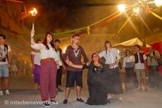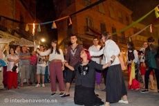 A continuación la actuación se desplazaba a la Plaza del Grano, abarrotada, en la que los asistentes contemplaron la actuación, esta vez protagonizada por jóvenes benaventanos, de la quema de la bruja.