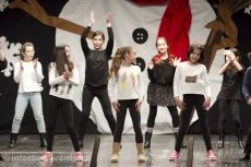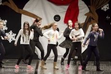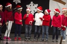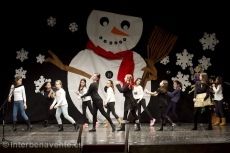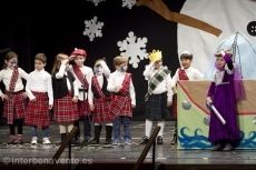 Ambiente festivo esta mañana en el Reina Sofía, con un gran muñeco de nieve en el escenario, por el que fueron desfilando todos los cursos del centro para interpretar sus canciones y coreografías.