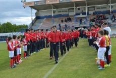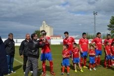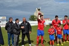 Antes del encuentro los jugadores del UD Toresana realizaban el pasillo al conjunto tomatero que recibía la copa de campeón de liga.