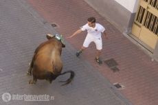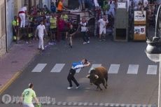 El segundo toro, de la misma ganadería, de nombre Novel y con 510 kilos de color castaño verdugo. Un astado que salía del cajón y se quedaba en la primera parte del recorrido haciendo caso omiso a las llamadas de los mozos para que subiera hacia Ronda Rancha en dirección al toril, por lo que tuvo que tuvo que ser recogido de nuevo en el cajón sin poder terminar el recorrido.