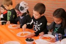 Los pequeños disfrazados de conde drácula, brujas, la muerte con su guadaña y alguna princesa elaboraron su propia merienda antes de pasar al taller de pintura.