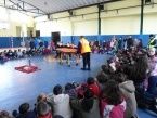 Una vez finalizado el simulacro, los voluntarios de protección civil han realizado una demostración de la atención a un herido en el pabellón del Centro, que ha sido presenciada por los alumnos.