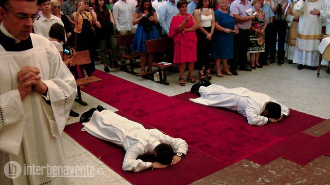 El obispo diocesano impuso el diaconado a Juan José y Millán en la eucaristía. Como sucesor de los apóstoles, monseñor Martínez Sacristán es el encargado de esta función, la del sacramento del orden. En su camino hacia el sacerdocio, que ambos seminaristas están realizando en el Seminario Mayor de Zamora (residiendo en el Teologado de Ávila, situado en Salamanca).