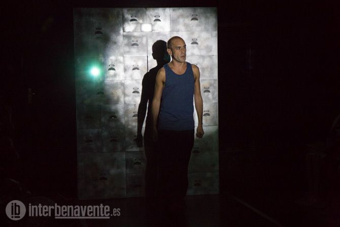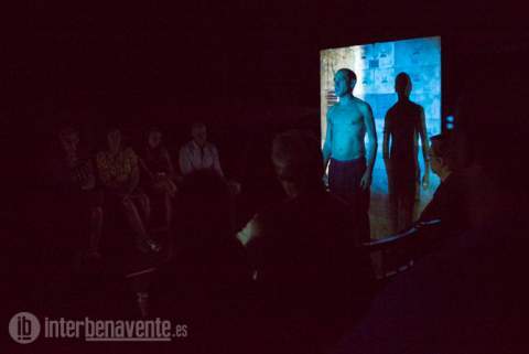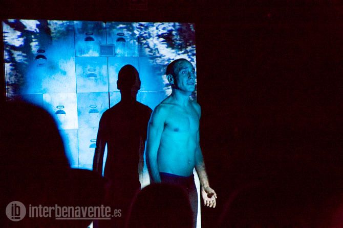 Patio de butacas vacío, los palcos también. Actores, técnicos y público convivieron durante toda la obra en el escenario, un escenario oscuro donde tan sólo dos pantallas a cada lado que daban la luz necesaria al actor en cada soneto y lo acompañaban con imágenes.