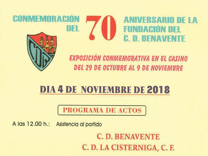 Desde el 29 de octubre al 9 de noviembre, en el Círculo de Benavente tendrá lugar una exposición retrospectiva del club.
