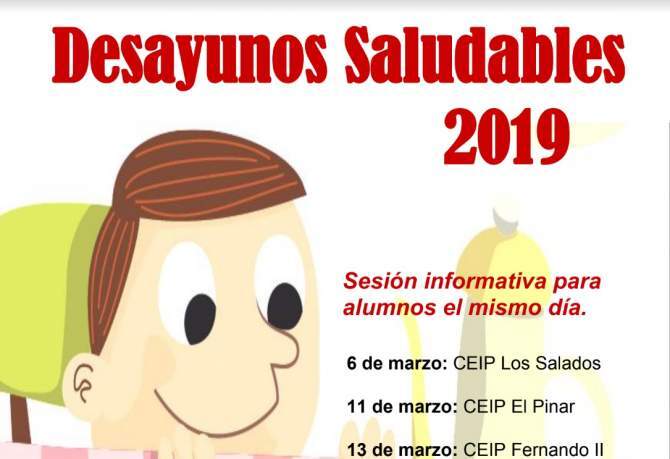 La Concejalía de Educación y Bienestar Social, un año más, pone en marcha, la edición del programa educativo que se lleva a cabo en los colegios de nuestra localidad, denominado: Programa “Desayunos Saludables”, este año en su décima edición contando con la colaboración de 4 establecimientos Hosteleros Locales.