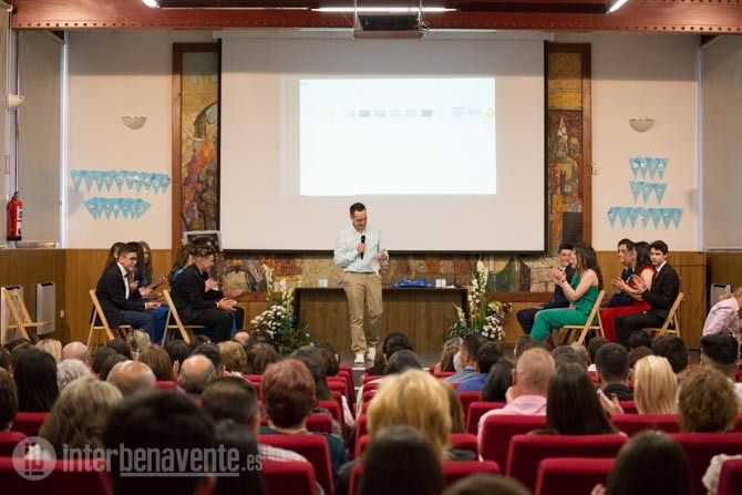 Luciano Huerga durante su presentación quiso transmitirles varios consejos, el primero que no olvidaran sus vivencias durante estos años en el instituto, además de que intenten ser felices “porque a pesar de que penséis que se cierra una puerta, se abren mil más”.