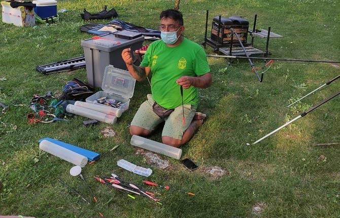 Prosiguieron las explicaciones y montaje de las cañas de la especialidad de “coup” utilizadas para la pesca de ciprinidos con esta modalidad se consigue atraer a la pesca a corta distancia y agruparla en un punto fijo paraconseguir el mayor número de capturas posible dentro del tiempo limitado del que se dispone durante la competición.
