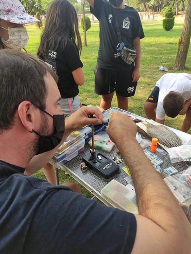 Asimismo también hubo tiempo para la explicación y montaje de dos de las técnicas en las que se utiliza para la pesca las cañas con carrete, estas dos técnicas llamadas feeder o cebador y pesca á la inglesa sirven para conseguir capturas por norma general a larga distancia.