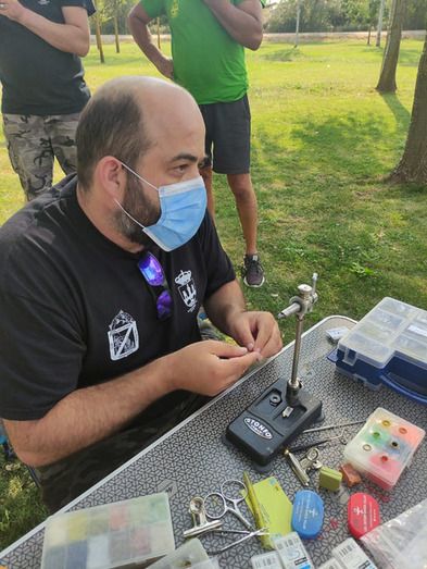 Y para terminar en la modalidad de inglesa los asistentes pudieron observar el montaje de un flotador y su línea sobre la caña así como las explicaciones de porqué se utiliza esta técnica que recibe su nombre de ser en Inglaterra donde más popularidad tiene y más se practica debido a las condiciones del clima que exige utilizar esta técnica en situaciones tales como el fuerte viento.