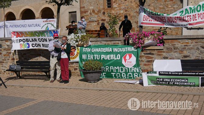 Más de un centenar de personas se han congregrado hoy en Faramontanos de Tábara, convocadas por la Asociación Pueblos Unidos de la Comarca de Tábara" para intentar poner ferno al avance de dos proyectos de macrogranjas en Pozuelo y Faramonotanos de Tábara