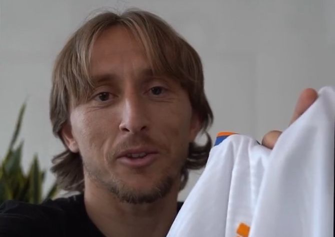 Luka Modric aparece en este vídeo junto a una camiseta dedicada que dice que entregará en persona a Elvira. "Me ha hecho mucha ilusión ver tu vídeo y espero conocerte pronto y que sepas que tengo un regalo para tí que te voy a dar cuando nos veamos, un beso fuerte", ha dicho Modric.