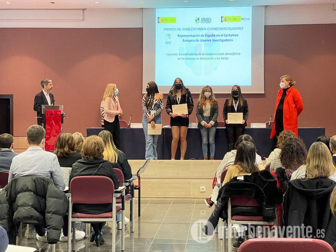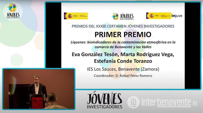 Después de haber examinado los trabajos y asistido a la presentación de los mismos al jurado durante las sesiones del XXXIII Congreso Jóvenes Investigadores, celebrado en el Centro Eurolatinoamericano de Juventud, CEULAJ, del 30 de noviembre al 2 de diciembre de 2021, los miembros de la Comisión del Jurado, por unanimidad, han fallado la concesión de los premios, resultaldo que el Proyecto líquenes del IES Los Sauces titulado “Líquenes: bioindicadores de la contaminación atmosférica en la comarca de Benavente y los Valles” ha obtenido el PRIMER PREMIO en el XXXIII Congreso Jóvenes Investigadores 2021.